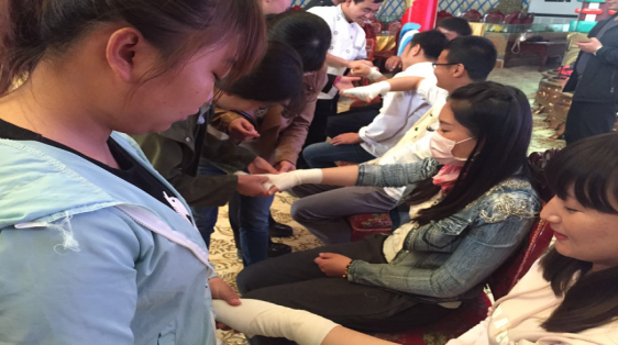 员工学习伤口包扎急救措施