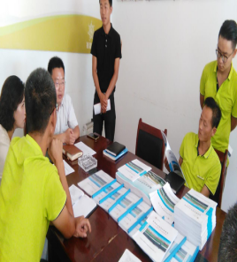 各部门中层管理人员在翻阅学习景区标准化体系文件