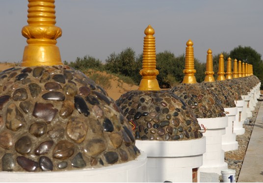 十八世纪初,在西藏上层统治者中发生了一场争夺政权的斗争。第巴•桑结嘉措和拉藏汗之间发生的蒙、藏统治集团的斗争,最终反映到仓央嘉措的身上,从而他被迫离开了拉萨。1705年,仓央嘉措离开拉萨后,开始了他一生的传奇生活。据有关资料记载:仓央嘉措从拉萨被解送北京的途中,到青海贡噶湖畔时,趁着大风迷路之机,从贡噶湖畔独自一人到了牛头山。牛头山是佛教圣地之一,“甘珠尔”大藏经中提到佛祖释迦牟尼曾经来过牛头山。六世达赖喇嘛从青海出来后首先到牛头山,除了拜佛祖圣地之外,还可以说从牛头山眺望了阿拉善,给神奇的《仓央嘉措传》埋下了“伏笔”。 1716年春,仓央嘉措从西藏前往青海,随从人员有贡卜劳迦等17人,当年秋天到达青海,在青海待了一个月。在此期间仓央嘉措去过广惠寺(西宁以北),返回西宁后,将贡卜劳迦等几个不能前往的随从人员打发回拉萨。他带了11个徒弟,从西宁起程前往阿拉善。他们一路通过天堂寺-华藏寺-裴家营-冰草湾等地到达阿拉善边界——朝呼尔陶鲁盖。朝呼尔陶鲁盖位于阿拉善旗扎哈道兰巴格(今温都尔勒图苏木)西部。仓央嘉措师徒一行12人,于1716年8月到达朝呼尔陶鲁盖,从朝呼尔陶鲁盖进入了阿拉善。 从朝呼尔陶鲁盖顺大路往东走10公里,就是旭如古拉山。这里居住着一户名叫丹巴的蒙古人家。据说丹巴好客,心底善良,东西过路人常到他家借宿、化斋。师徒一行经过他家,上旭如古拉山烧香煨桑,祝贺顺利到达阿拉善。后人在旭如古拉山上建起了敖包,纪念仓央嘉措在此留下的足迹。从旭如古拉往东5公里处是古日本呼都格,也叫三眼井。从古日本呼都格往东6公里到巴彦陶海,从巴彦陶海往东7公里是伊克呼都格。从伊克呼都格往东南方向15公里,就到达查干敖包西利。 当年,六世达赖师徒一行下了查干敖包西利的高梁后,被腾格里沙漠挡住了去路。这是他们到阿拉善后碰到的难关。熟悉这段沙子路的人会跟着驼粪蛋子直入腾格里沙子,可是,他们不识“沙性”,不敢蛮闯,只好顺着沙子边往北拐去,拐到泊日根呼都格。泊日根呼都格离查干敖包西利5公里,是一个有水、有草的好地方。六世达赖就在泊日根呼都格遇见了通湖巴格牧民图布吉尔嘎拉。由他带路翻了20公里的沙子顺利到达通湖巴格地盘的木胡尔。从木胡尔经过巴彦宝力格、塔崩陶鲁盖到达哈日陶鲁盖,共有13公里。图布吉日尔嘎拉的家就住在哈日陶鲁盖,师徒12人在图布吉日尔嘎拉家住了几天。图布吉日尔嘎拉把自己的一匹白马送给了仓央嘉措。师徒12人从图布吉尔嘎拉家出发后向正南方向走了4公里上了个高梁。民间传说中说:六世达赖的守护神——阿孜尔•蒋坤因为脚烂走不动了,六世达赖就把他留在这个高梁上。当地牧民把此神作为山水神供了起来,并且为此神建了敖包。这就是通湖巴格的“通湖尹敖包”,这个高梁从此得名为“敖包西利”。